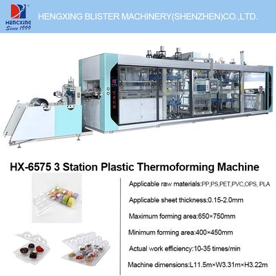 The HengXing HX-6575 Pressure Thermoforming Machine efficiently produces high-quality plastic products for various industries. With forming size of 650×750mm and maximum forming depth of 120mm, it accommodates sheet thicknesses from 0.2mm to 2mm, making it highly versatile for multiple applications.